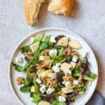 7. Crumble the goat cheese over the salads and top with chopped walnuts.