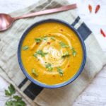 Once vegetables are cooked, take off from heat and blend using a hand blender. Add in the cream, season for taste, mix well and serve.