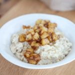 Once the porridge is cooked, add in the protein powder and mix well. Divide between bowls, top with apples and serve.