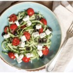 1. Cut the ends of the cucumber and spiralize it into a bowl. Cut the cucumber “noodles” in 2-3 parts, to shorten them.