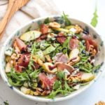 Pear, cured ham & walnut salad