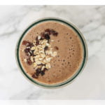 Place the banana, almond butter and cocoa nibs into a blender. Add in the soy milk and drained oats, then blitz until smooth.
