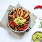 To serve, divide the potatoes between plates and top with chilli, mashed avocado and sprinkle with coriander.