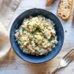 Clean the fish from bone and skin, then chop the meat and add to the bowl.